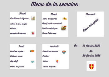 Menu cantine du 19 janvier 2026 au 23 janvier 2026.
