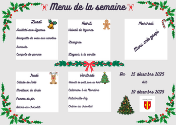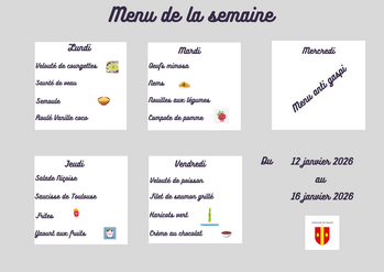 Menu cantine semaine du 12 janvier au 16 janvier 2026.